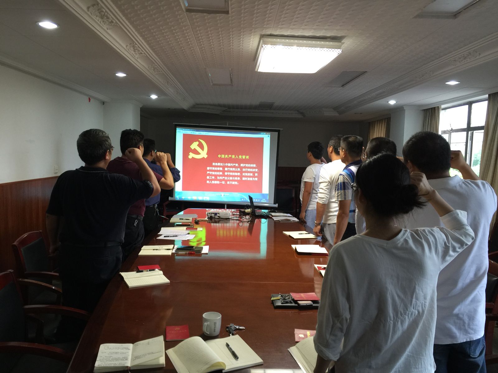 9月28日下午,校园建设与管理处党支部按照机关党委“两学一做”学习教育实施方案和学习计划的安排,在开展‘讲政治、有信念’专题学习讨论前重温入党誓词并诵读党章,让党员们再次感受激动的入党时刻,接受心灵深处的洗礼。通过铿锵有力的宣誓,牢记党员身份、坚定理想信念、履行党员职责,践行入党誓言。